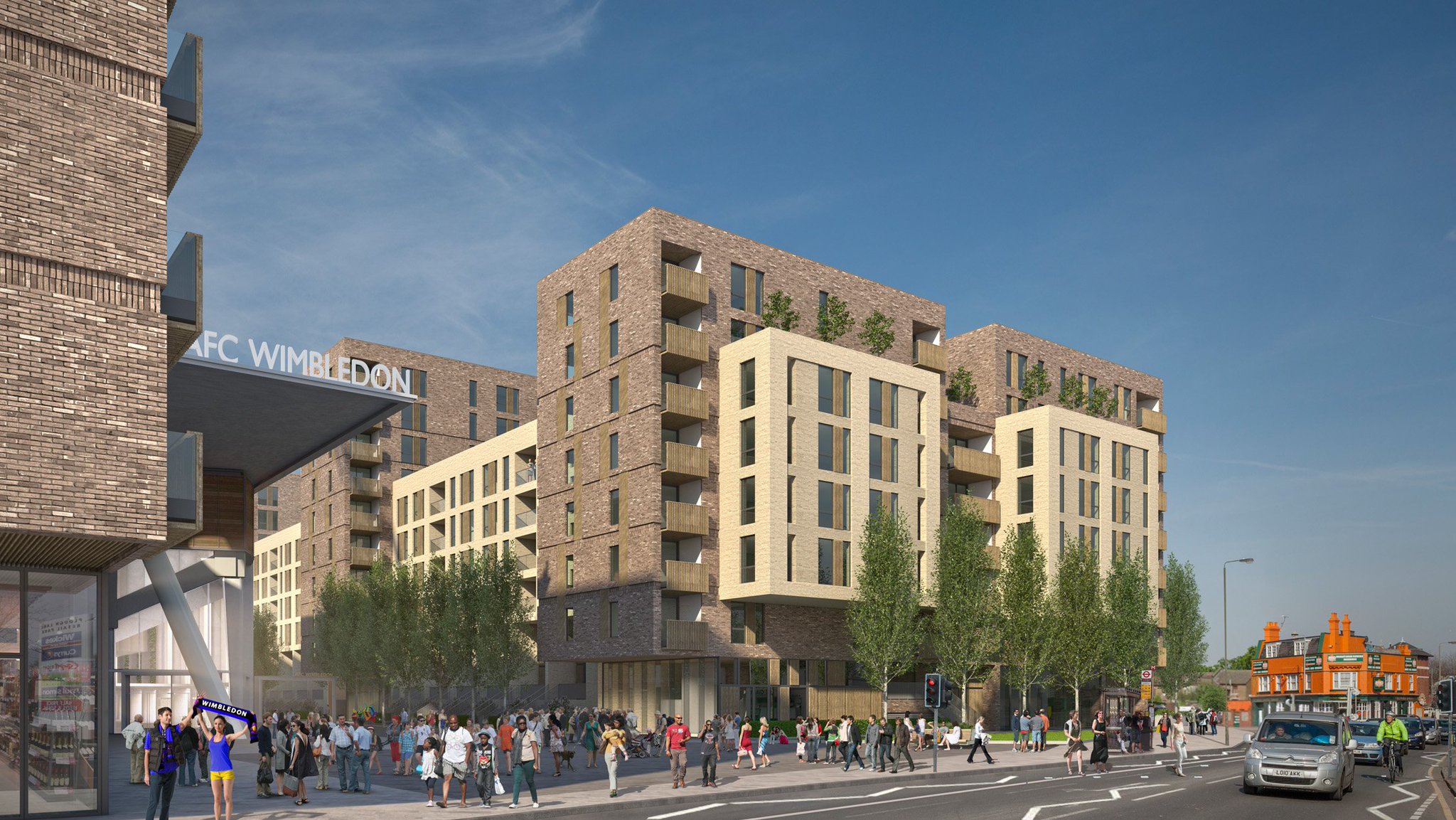 A residential development, with about 600 new homes, is being built alongside afc wimbledon's new stadium.
